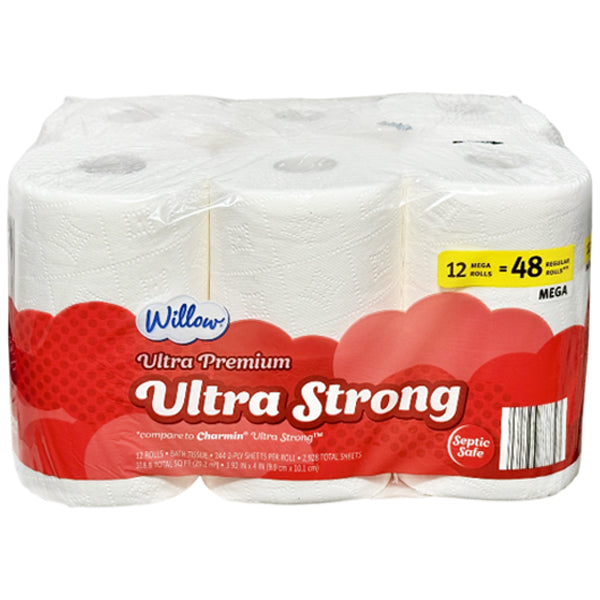 WILLOW - ULTRA STRONG BATH TISSUE 12=48 ROLLS 12PK