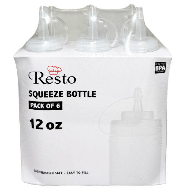RESTO - 12oz CLEAR SQUEEZE BOTTLE W/LID 6PK