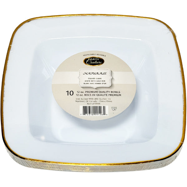 NATURALE - 12oz WHITE SQUARE SOUPBOWL W/ GOLD RIM 10PK