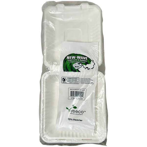 NEW WAVE - 8in BAGASSE CLAMSHELL 50EA